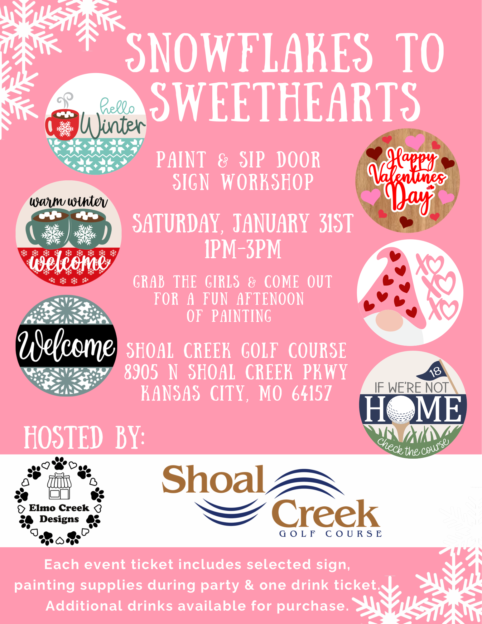 Grab the girls & come out for a fun afternoon of painting! Hosted by Elmo Creek Designs here at Shoal Creek Golf Course. Each event ticket includes selected sign, painting supplies during party, & one drink ticket. Additional drinks available for purchase.